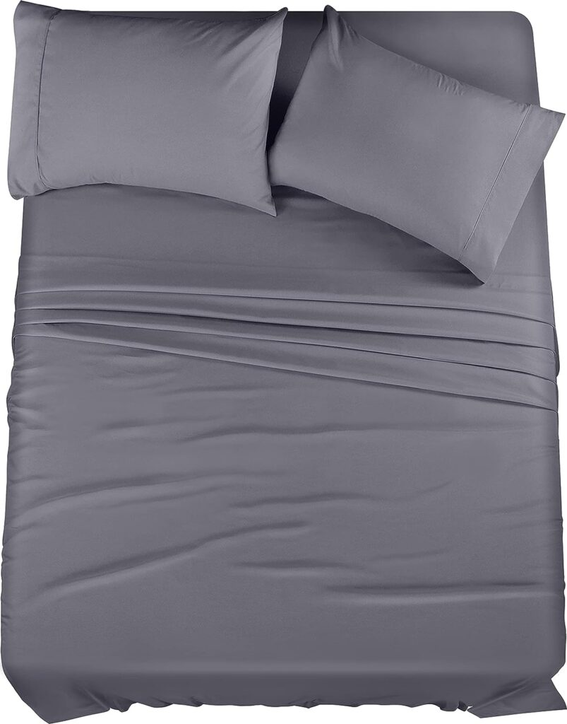 Utopia Bedding Juego de sábanas de 4 piezas, microfibra cepillada, resistente al encogimiento y a la decoloración, fácil cuidado (Queen, gris)