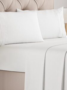 Juego de sábanas de 4 piezas tamaño Queen | Cómodas, transpirables y refrescantes | Lujo de hotel p/mujeres/hombres | Bolsillos profundos, ajuste fácil, extrasuaves y sin arrugas | Oeko-Tex blanco
